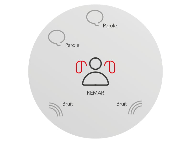 - Double traitement : augmentation du contraste entre la voix et l’environnement sonore grâce à un traitement différencié ;