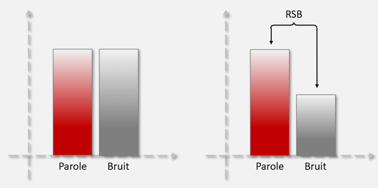 - Après le traitement du son effectué par les appareils, le RSB sera amélioré avec un bruit réduit comparativement à la parole (figure 2b).