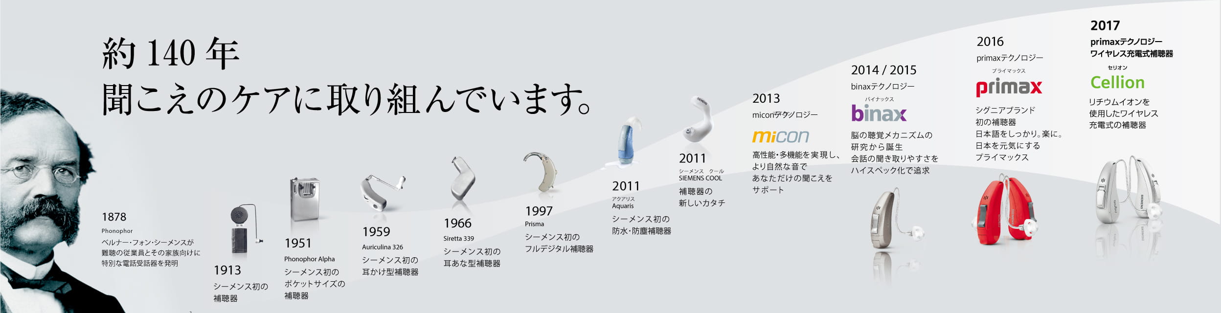 1878年にベルナー・フォン・シーメンスが補聴器の原型を開発して以降、音響学の最先端を切り開いてきた歴史があります。