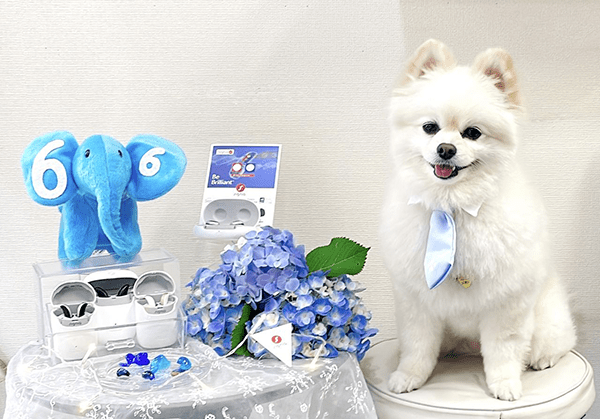 3. 看板犬さんも全体の色調に合わせた水色のネクタイをしていて、会話のきっかけになりそう