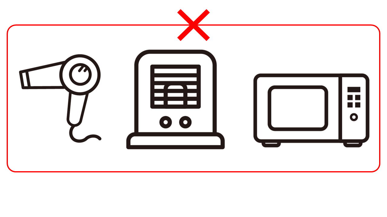 ✖ 補聴器を乾燥する時に下記方法は使わないでください