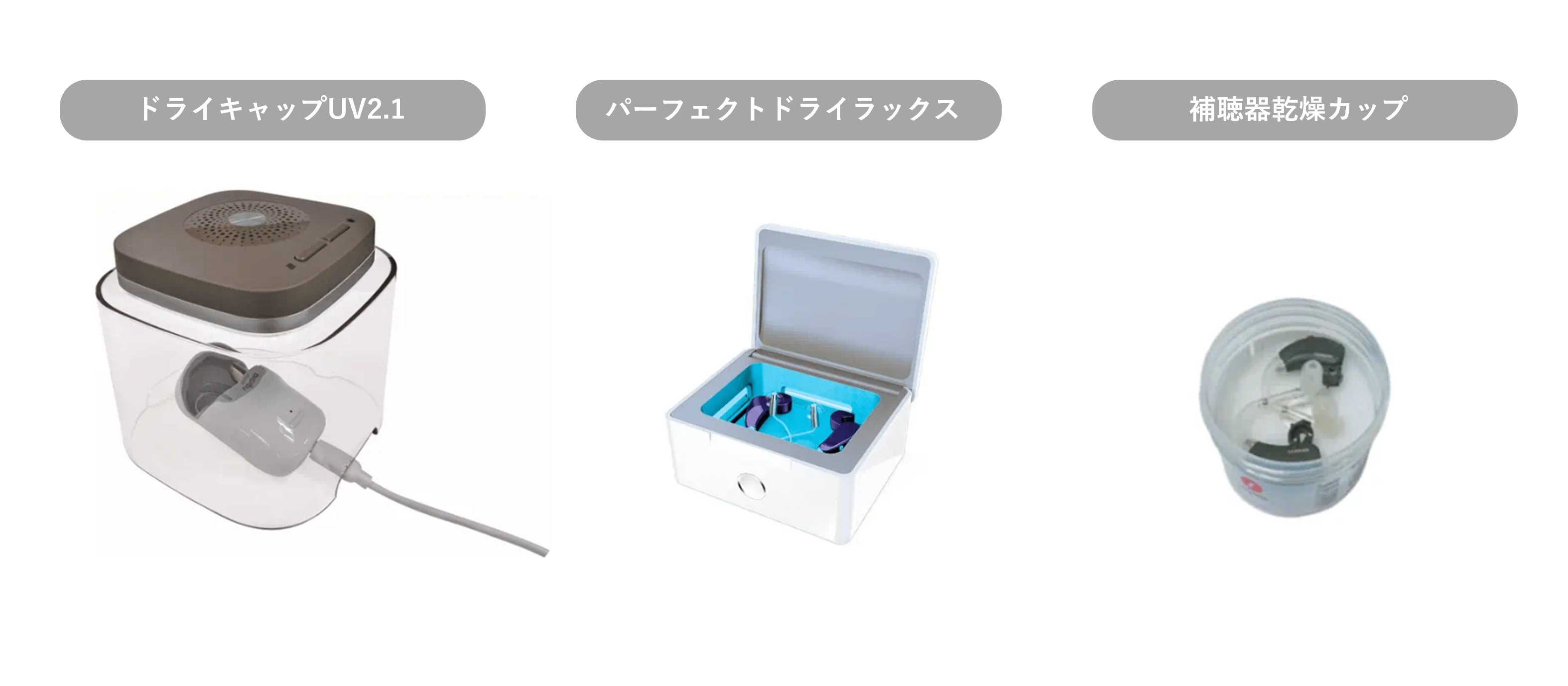 補聴器専用の乾燥ケースや補聴器乾燥機を利用しましょう。