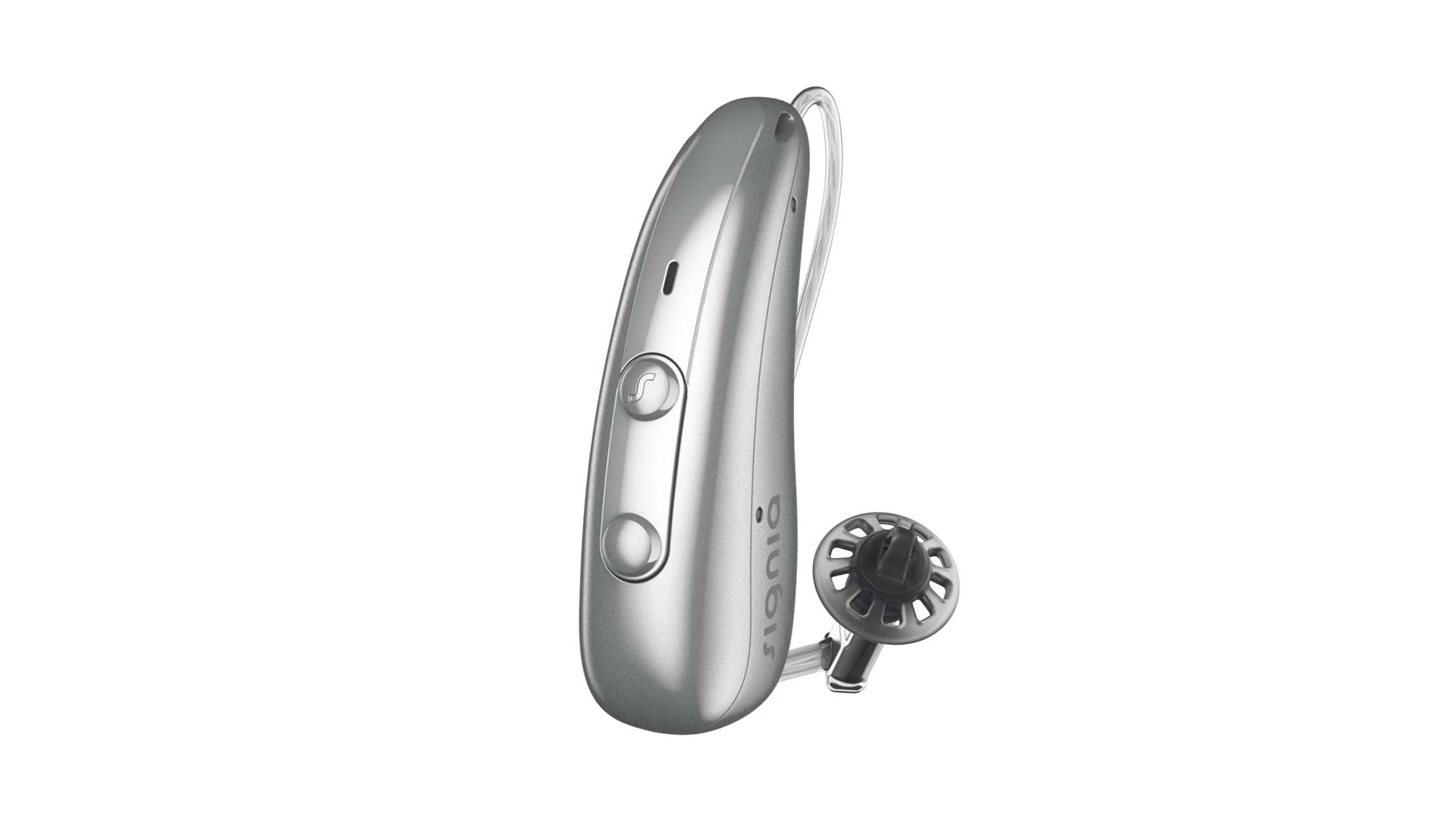 CROS Silk IXは世界唯一のCICサイズの既製充電式CROS送信機。シグニアの下記の耳あな型補聴器と一緒に使用可能