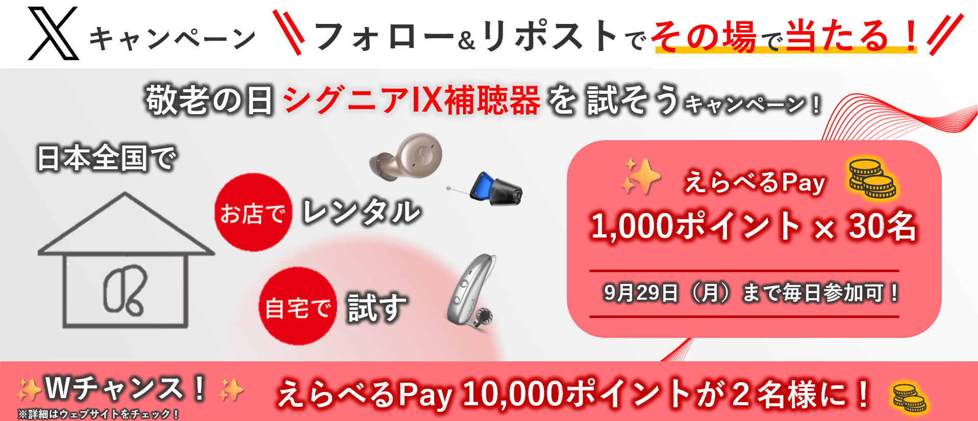 X上で、シグニア補聴器公式Xアカウント「@SigniaJapan」をフォローし、指定の投稿をリポストしてください。