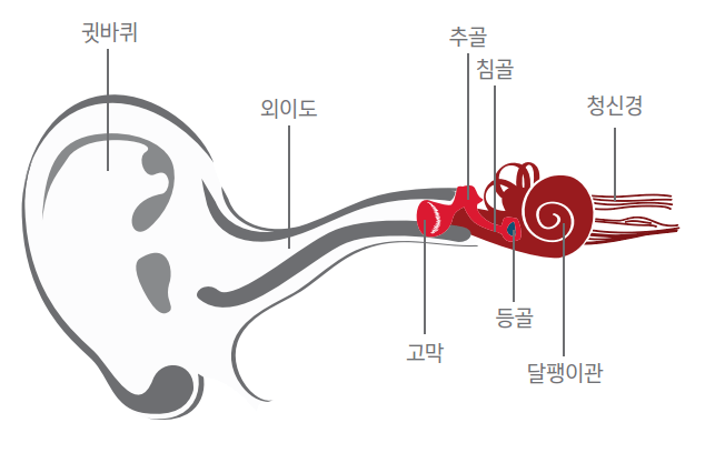 귓바퀴는 소리를 포착하고, 외이도는 깔때기처럼 소리를 증폭시켜 고막으로 전달합니다.