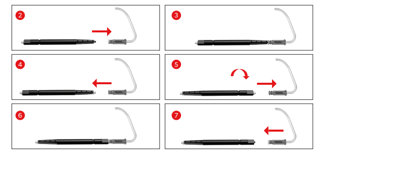 Przykładowa instrukcja wymiany filtra w aparatach typu RIC (poszczególne kroki lub rodzaj filtra mogą się różnić w zależności od modelu aparatu słuchowego, ale ogólne założenia pozostają takie same):