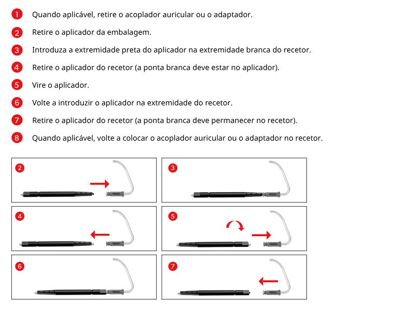 Se o problema se mantém ou se o carregador apresenta luzes de erro (consulte o guia de utilizador para saber o comportamento esperado dos LED), o seu carregador ou aparelho auditivo pode precisar de uma verificação profissional. Traga o adaptador USB, o cabo de carregamento e o carregador, juntamente com os seus aparelhos auditivos, ao seu prestador de cuidados auditivos para obter assistência adicional.